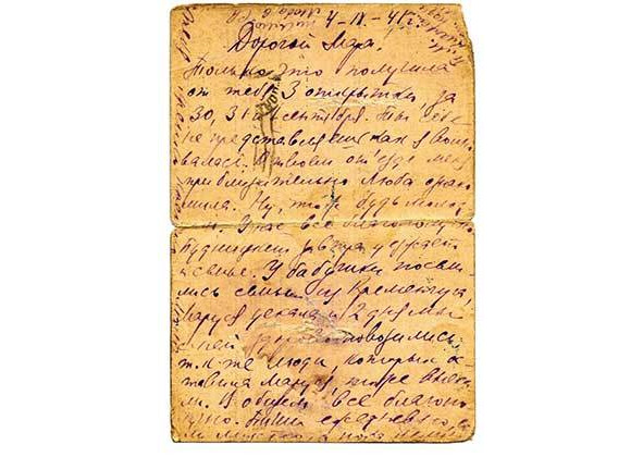 Когда уезжал из Семеновки, на пути к разъезду меня нагнал Виктор Кононов и передал мне открытку от мамы за 4/IX—41 г. Неописуема была моя радость. Это было первое письмо после моего отъезда из Полтавы 27/VIII.
