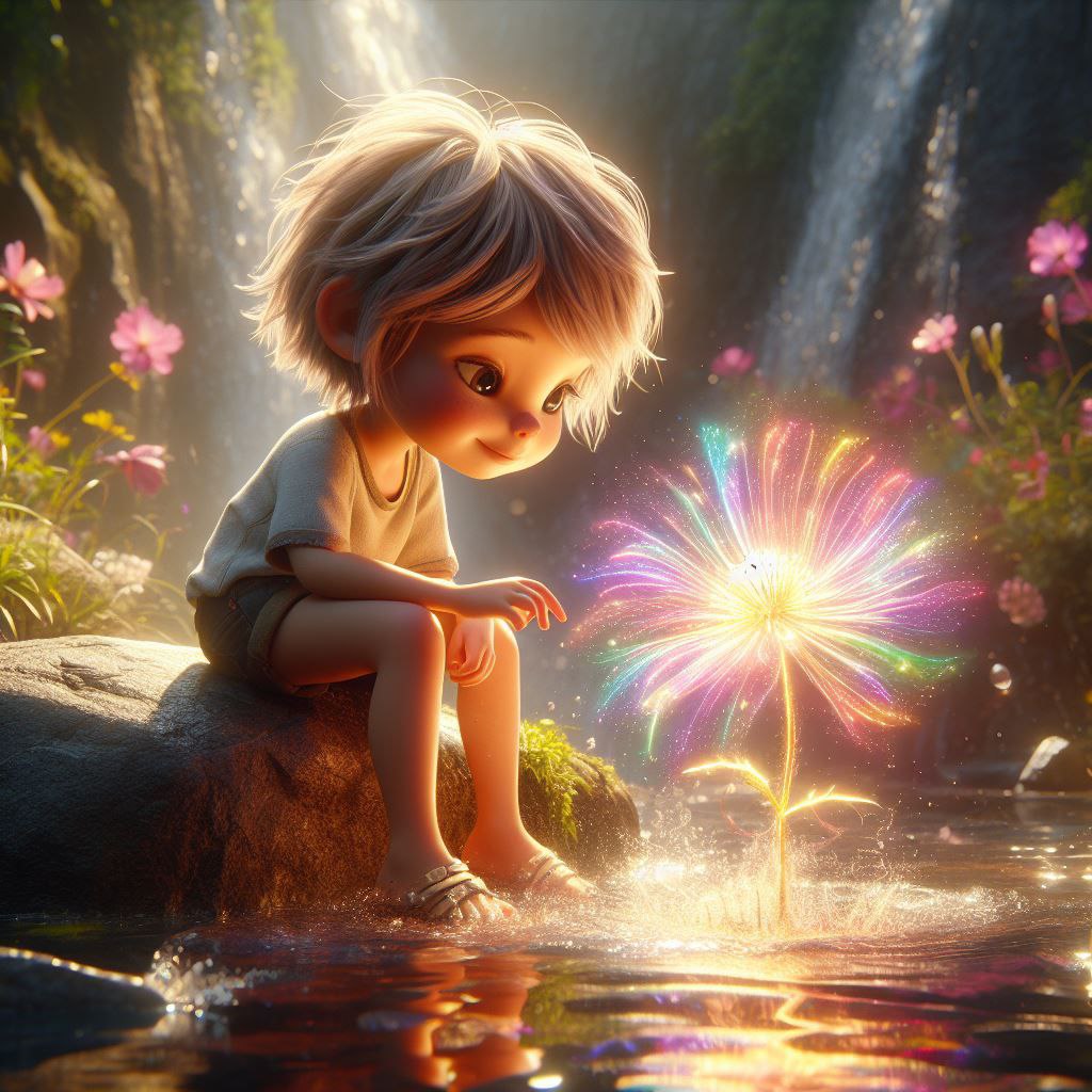 Настя принесла Цветок к источнику чистой воды, где его лепестки могли омыться и восстановить свою свежесть. Она нежно поливала его, произнося мягкие слова утешения и поддержки. Ее добрые намерения и волшебные силы, полученные на горе Эльбрус, наполнили Цветок новой энергией.