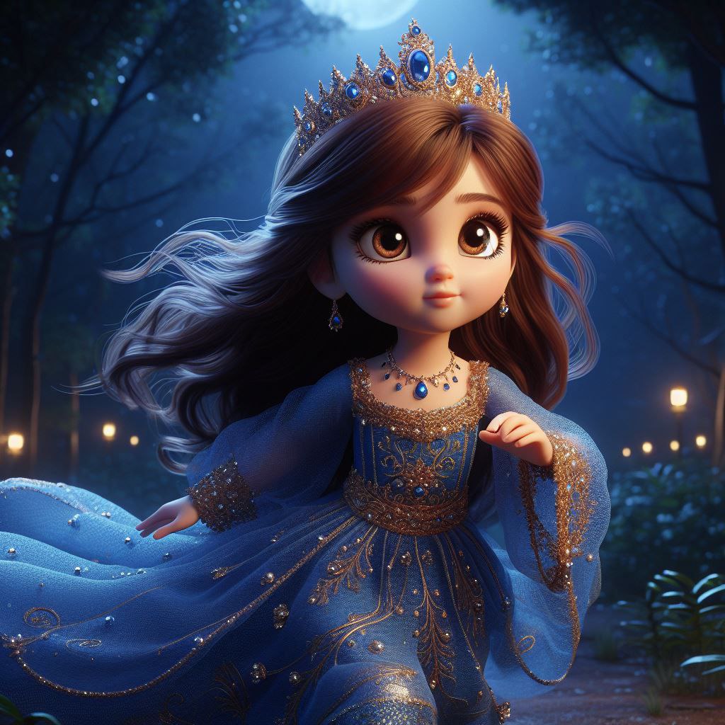 Вдруг из кустов послышался шорох и на поляну выбежала маленькая девочка в очень нарядном голубом платье, расшитом золотом и жемчугом. На голове незнакомки красовалась изящная золотая корона с сапфирами. «Принцесса!» – догадалась Лиза и почтительно поклонилась.