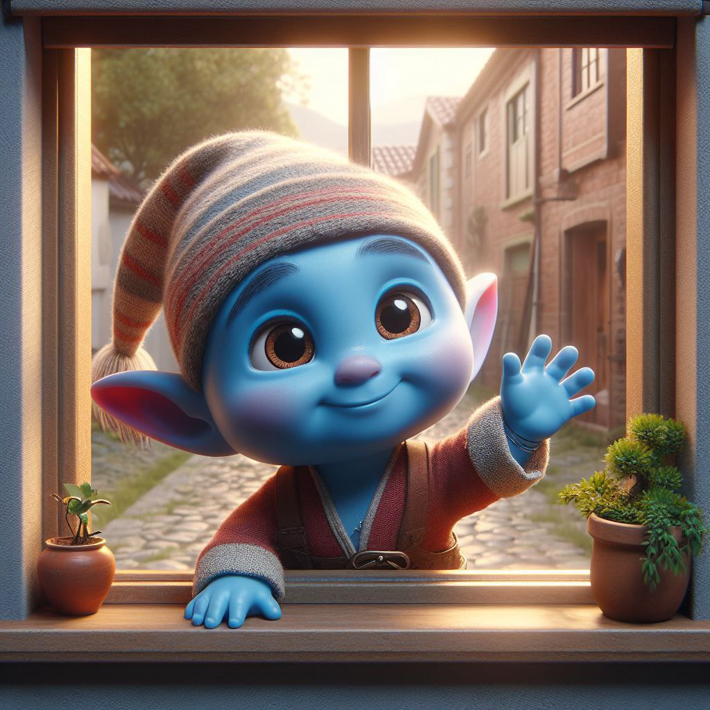 Вдруг Диана услышала тихий стук в стекло и увидела за окном маленького синего гномика с добрыми карими глазами. Он махал ей ручкой, приглашая выйти.