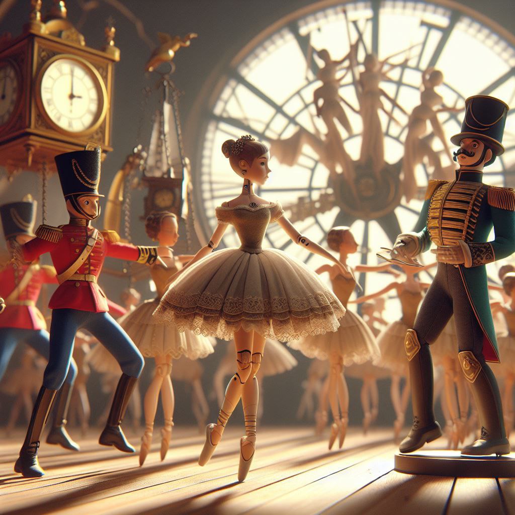 Там заводные солдатики и куклы-балерины танцевали под песни механической шарманки. Поодаль деревянные кубики и кегли соревновались в спортивных состязаниях. А над поляной летали воздушные змеи, управляемые плюшевыми мишками и зайчиками.