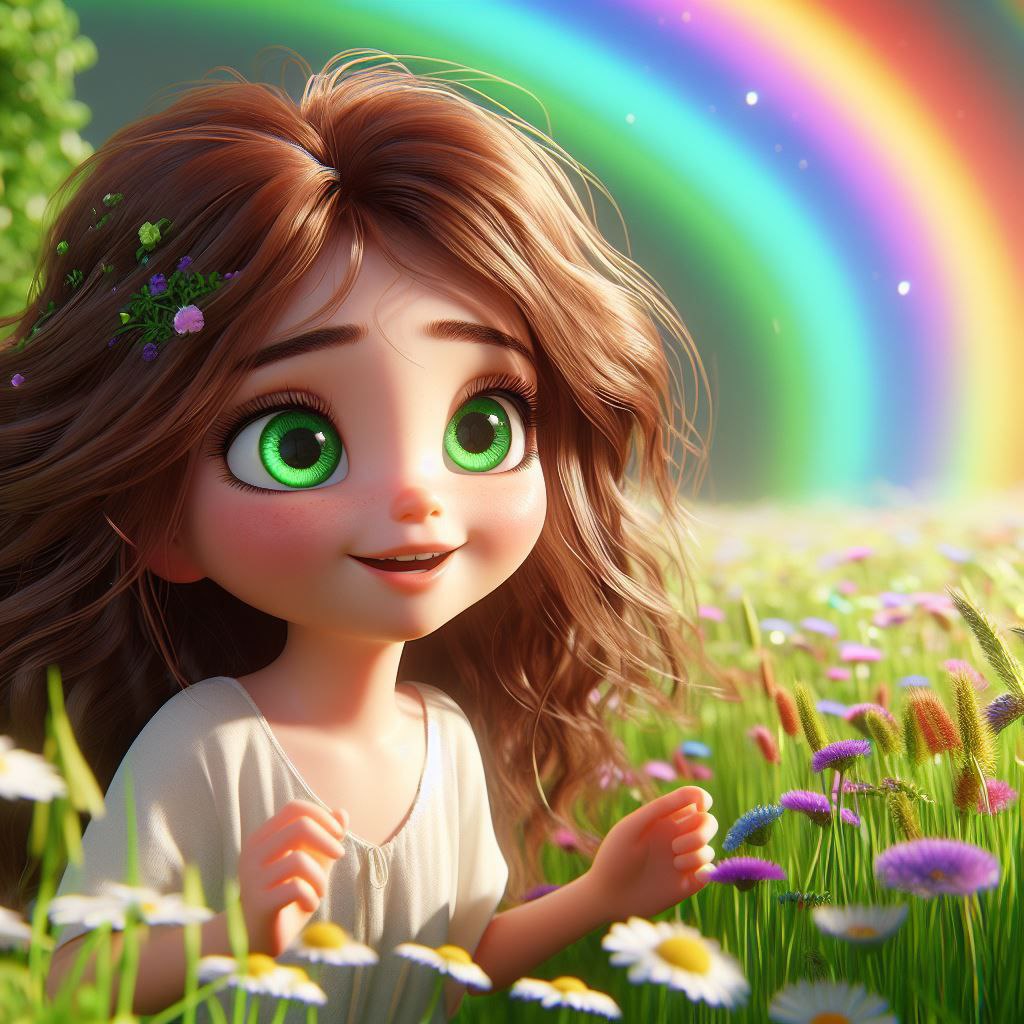 У Дианы загорелись глаза от предвкушения приключений. Конечно же, она с радостью согласилась! И вот уже через минуту девочка вместе с Весельчаком оказалась посреди яркого луга у подножия разноцветной радуги.