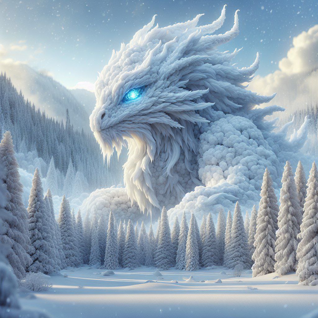Перед ними стоял Снежный Хранитель – величественное существо, сделанное из самого снега и льда, с глазами, светящимися как зимнее небо. Он кивнул детям, словно приветствуя их в своем царстве.