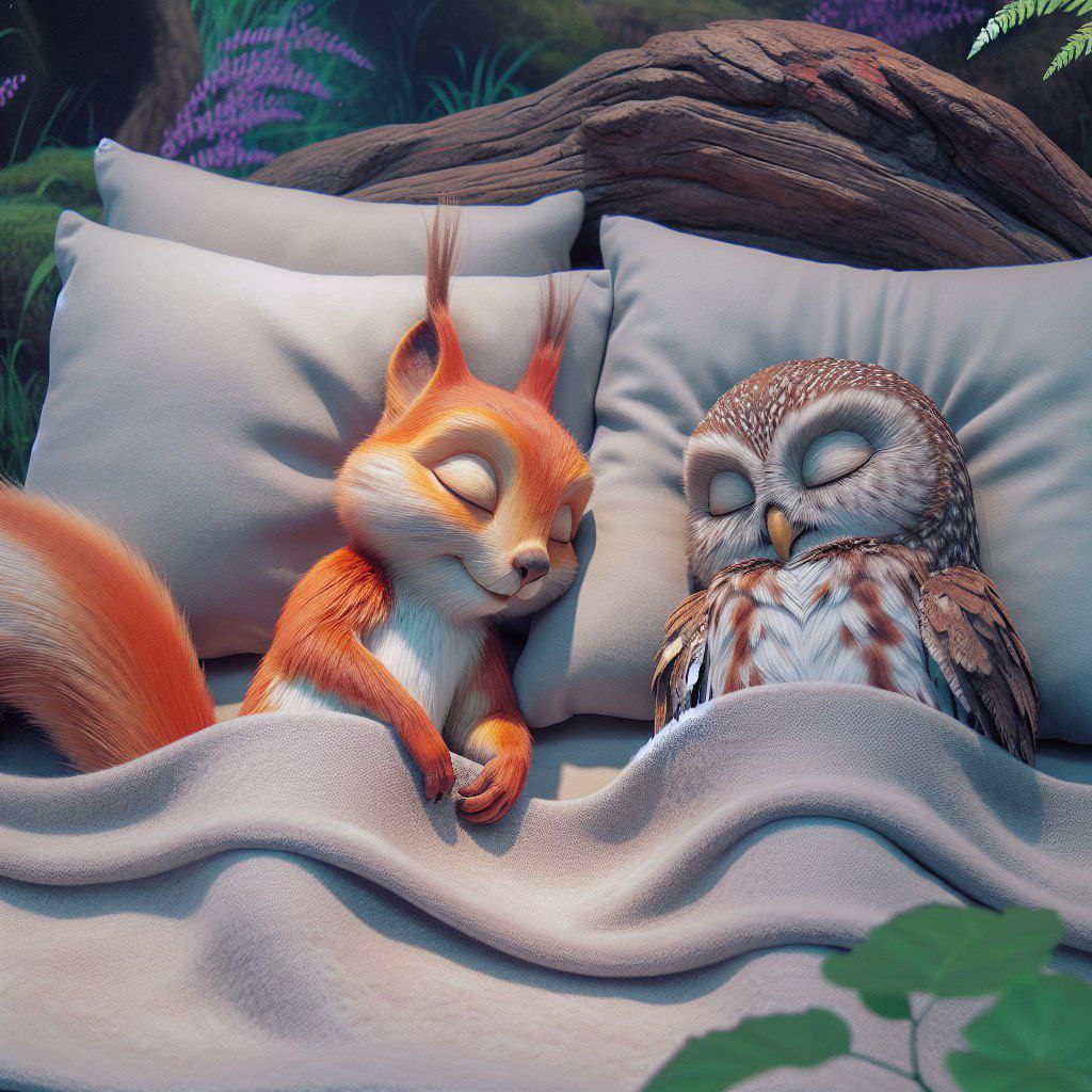 Сегодня мы отправимся в лес, где живут Сова Оливер и Белка Белла. Оливер – это величественная сова с огромными ясными глазами и пышным серебристым оперением. Он обожает ночное время, когда лес наполняется тишиной и спокойствием. Белла – это живая и шустрая белка с пушистым хвостом и яркими глазами, полными любознательности.