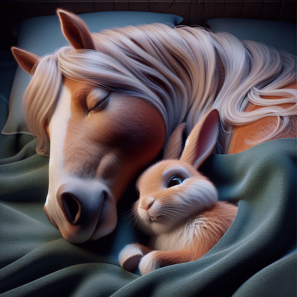 Лошадки и кролики готовятся ко сну.