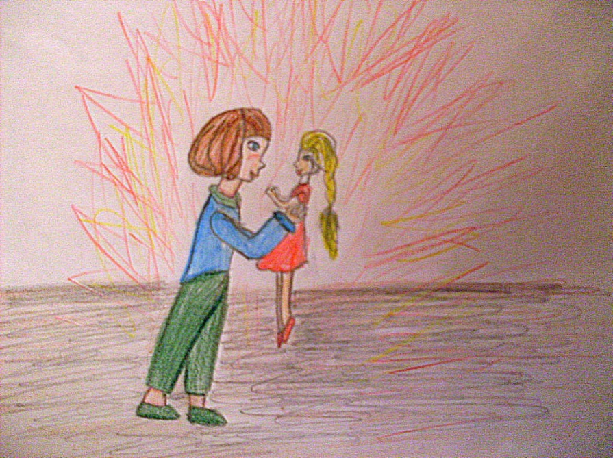 Итак, я посадил Светку на плечи, она выпустила куклу из рук и доверчиво обняла меня за шею. От прикосновения этих маленьких ладошек я вновь почувствовал прилив небывалой нежности и одновременно ответственности, у меня словно прибавилось сил. Я шагнул на доску. Осторожно ступая, шел, вытянув левую руку в сторону, правой крепко держал сомкнутые у меня под подбородком Светкины ручки. Шаг, еще шаг, еще… Вот мы уже на середине пути. Сзади что-то трещало, крошилось, падало. Я не оборачивался, моё внимание было приковано к противоположному концу доски. Светка, которая в отличие от меня имела возможность безнаказанно вертеть головой, заревела, я понял, что наши дела совсем плохи и стал делать шаг шире, как мог.