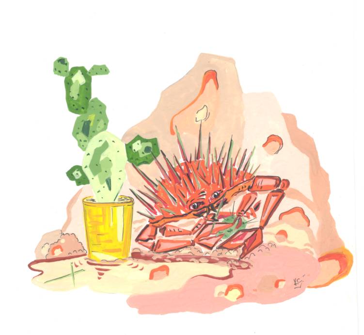 – Хвост трубой, грудь вперед и с улыбкой шаг вперед! – отпустив Кубика на песок она поставила кактус рядом с ущельем и запела песню, повторяя одно и тоже несколько раз. Крабы подхватили ее и зашагали вперед, подняв усы вверх.
