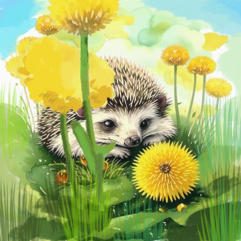 Ежата разбежались, кто куда, и бежали до тех пор, пока не устали. Ваня затаился под каким-то кустом. Он схватил один из одуванчиков и спрятался под ним, как под зонтиком. А Аня убежала так далеко, что потеряла из виду и дуб, и своего друга.