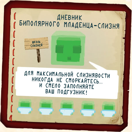 Я-то надеялся поймать как минимумзомбиили скелета, короче, что-то такое, что можно было бы отдубасить для поддержания формы. Ну и… я подумал, что смогу избавиться от слизня одним ударом кирки. Никто не узнал бы, что из-за меня в деревне завёлся моб, родители не психовали бы, старейшины не закатили бы скандали не угрожали пожаловаться мэру, ну и я – как ни в чём не бывало. Никто бы никогда ничего не узнал.