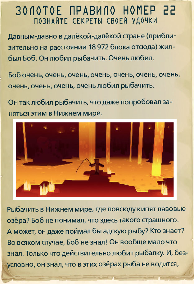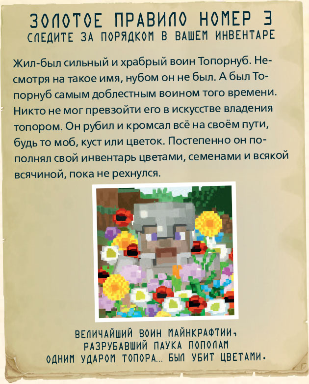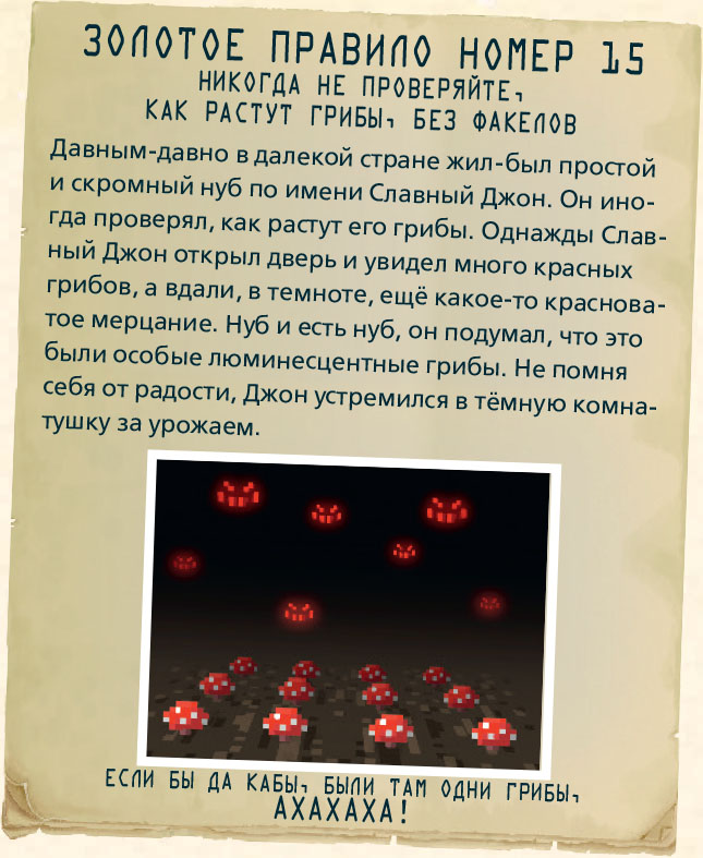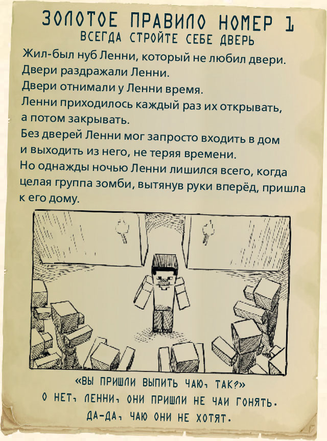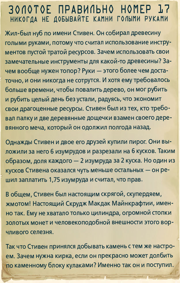 Его свод правил – это сборниксамых нубовскихсоветов в мире. Но все ученики обязаны его прочитать. Старейшины думают, что в нём суперважная инфа. Вот несколько примеров (каждое золотое правило – это маленькая басня, в которой есть сокровенный смысл – специально для нас):