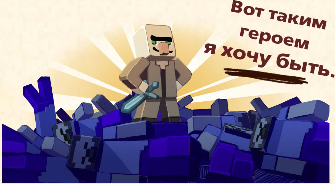Вот что кошмарно в жизни обычного деревенского жителя – мы беззащитны перед мобами. Я имею в виду зомби. Они приходят каждую ночь, и с этим ничего невозможно сделать. Остаётся прятаться в своём домике. Если бы только мы могли сражаться! Но увы, деревенские жители не имеют на это права. Старейшины говорят, что это очень опасно. Всё, что мы должны делать, – пахать, пахать, пахать. Собирать, собирать, собирать. И трястись в своих домах всю ночь до рассвета.