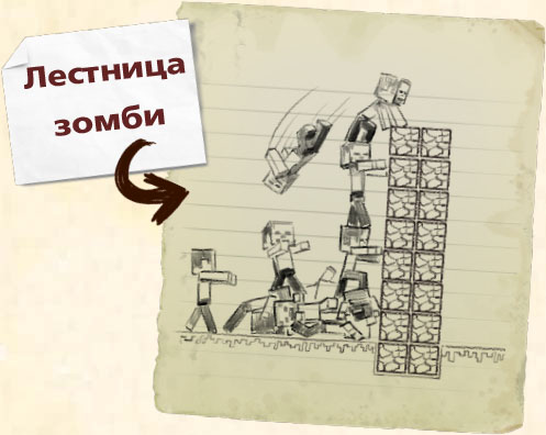 Существует также «лестница зомби», когда зомби формируют лестницу у крепостной стены.