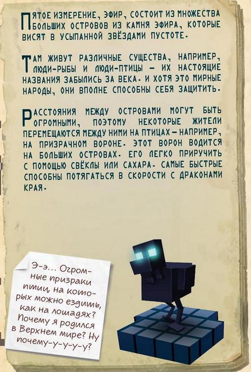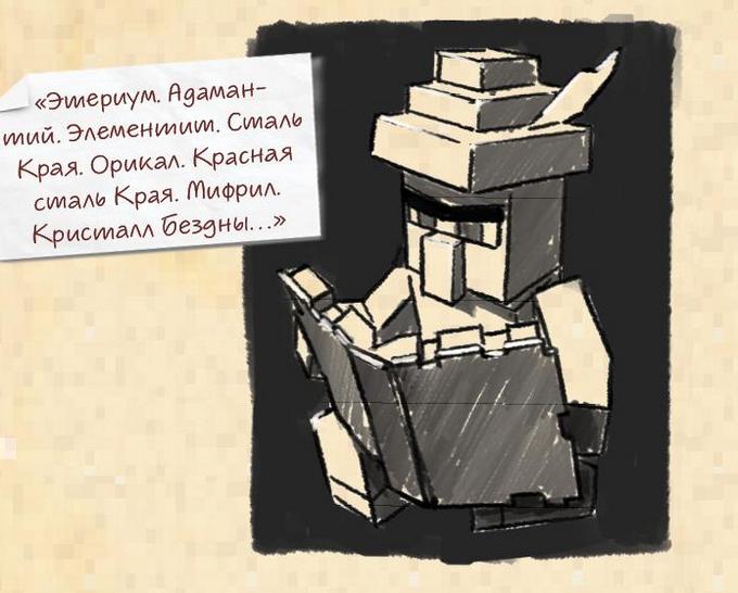 В моём новом жилище я повторял названия вслух. Это редкие металлы – или редкие элементы, – и таких, оказывается, много. Большинство из них есть только в других измерениях. Я имею в виду, в измерениях, которые лежат за Краем. Такие ископаемые очень трудно добыть, даже если у вас есть обсидиановая кирка. А некоторые даже не существуют в естественном состоянии, и поэтому добыть их невозможно. Их делают из сплавов других металлов в тигеле – это что-то вроде улучшенной печи.