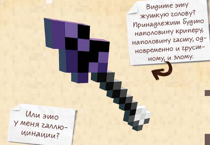 Само собой, до этого я никогда не видел у стрел таких наконечников. Я думаю, что она отравлена или зачарована таким жутким заклинанием, рядом с которым проклятие Наказания сойдёт за лёгкую мигрень. Но, поскольку я отважный путешественник, мне даже захотелось уколоть себя кончиком стрелы, чтобы посмотреть, что будет. Однако я быстро понял, что зомби, свинозомби или даже крипер куда больше подойдут на роль подопытного кролика.