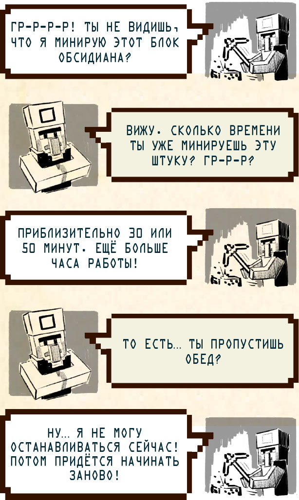 Ух, столько времени нужно на минирование обсидиана. Как мне и говорили, возникает ощущение, что прошла вечность.