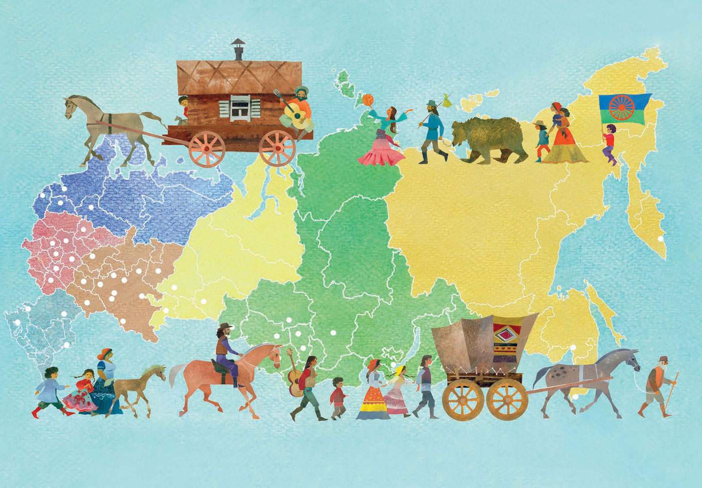 Оказавшись в Европе, рома большими группами-таборами разошлись по разным странам и образовали много разных племён, у каждого из которых началась своя собственная история. В восемнадцатом веке одно северное племя с балтийских берегов переселилось в Россию. Потомки этих переселенцев стали русскими цыганами. Зарабатывали на жизнь русские цыгане по-разному: одни оседали в городах и старались преуспеть в торговом деле или пели и плясали для богатых господ. Другие не оставили жизни кочевников: бродили по дорогам, гадали желающим по руке или на картах, продавали на ярмарках лошадей, которых приобретали не всегда законным способом…