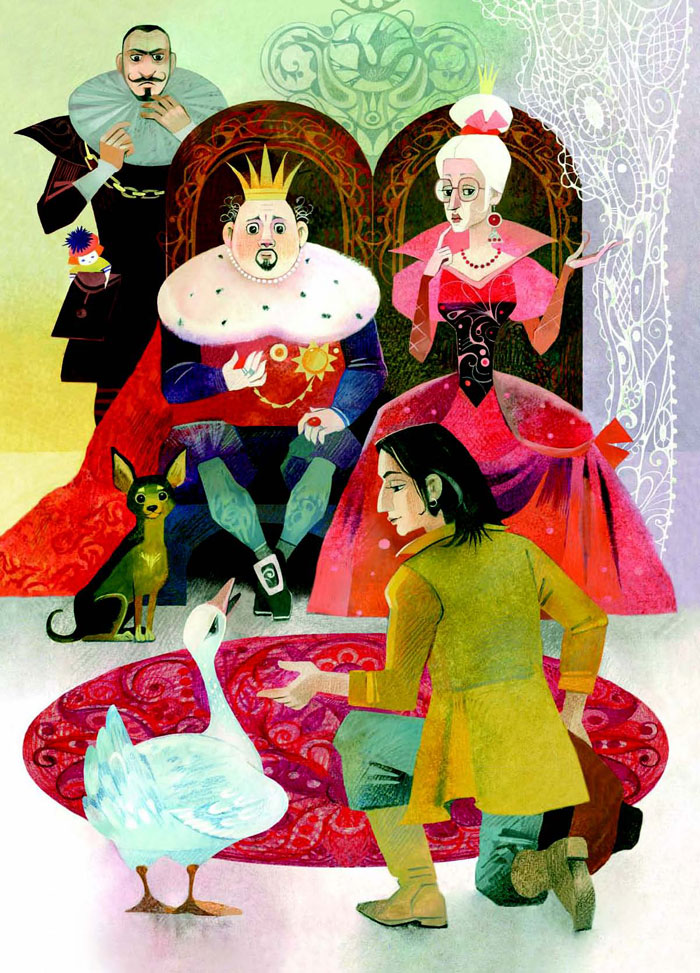 – А вина министра, – отвечает гусыня, – самая большая. Он не давал жизни королевской дочке, всё таскался за ней. Когда она на него жаловалась, отец не слышал. Когда он её за руки хватал, мать не видела. А потом министр сказал, что, если королевична за него замуж не пойдёт, он брата её убьёт. Показал ей куклу тряпичную и сказал, что это колдовская кукла. Если ей голову оторвать, то королевич умрёт.