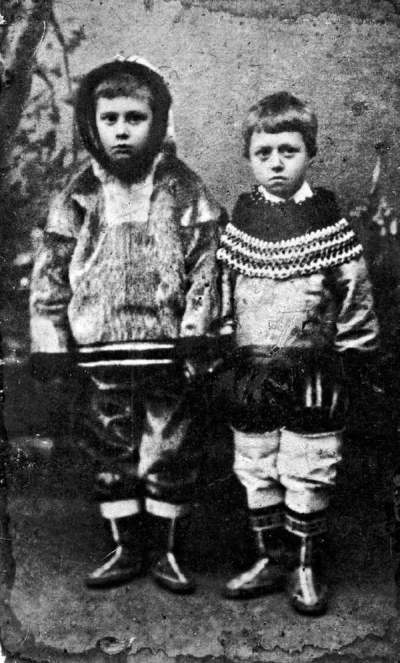 Шестилетний Кнуд Расмуссен (слева) с сестрой Вильгельминой в гренландской одежде, Копенгаген, 1885 год. Архив издательства Gyldendal
