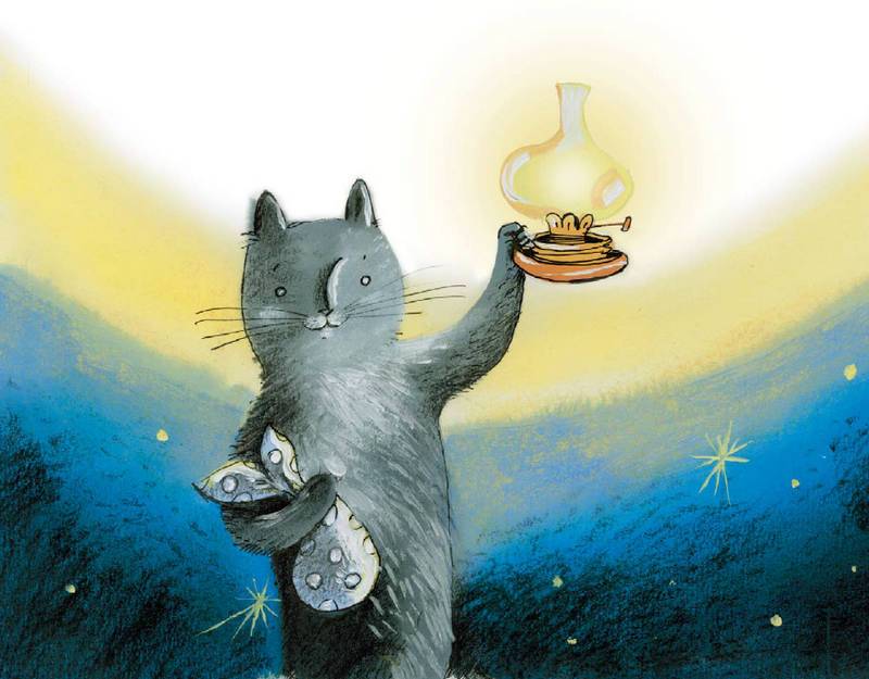 Забыв про мышь, Кот вскочил на лавку и сунул в него нос. В кувшине было чудесное, свежее, жирное молоко. Кот налил себе блюдечко и с удовольствием поужинал. Вернувшись в гостиную, он поставил лампу на стол и принялся устраиваться на ночлег.