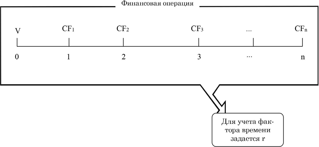 V – некоторая стоимостная оценка, отражающая суть операции (например, это может быть будущая стоимость денежного потока, дисконтированная стоимость денежного потока, текущая рыночная цена актива, величина инвестиций);