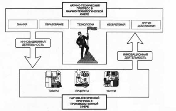Рис. 1. Инновационная деятельность как процесс, соединя ющий две составляющие научно-технического прогресса: НТП в научно-технологической сфере и НТП в производстве