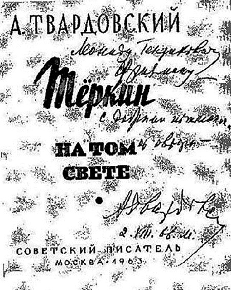 Не спеши с догадкой плоской,Точно критик-грамотей,Всюду слышать отголоскиНедозволенных идей.И с его лихой ухваткойПодводить издалека —От ущерба и упадкаПрямо к мельнице врага.И вздувать такие страстиИз запаса бабьих снов,Что грозят советской властиПотрясением основ.Не ищи везде подвоха,Не пугай из-за куста.Отвыкай. Не та эпоха —Хочешь, нет ли, а не та![5]Надежда на взаимопонимание, которую я робко позволял себе питать, обращаясь к нему со своим письмом, полностью подтвердилась, когда я увидел, что из всех своих книг, которыми он мог бы меня одарить, он остановил свой выбор на отдельном издании поэмы «Теркин на том свете». Я счел это неоспоримым подтверждением того, что он почувствовал биение моего сердца, одобрил готовность вторгаться в запретные области, да как! «Написать что-нибудь на собственно современную тему».
