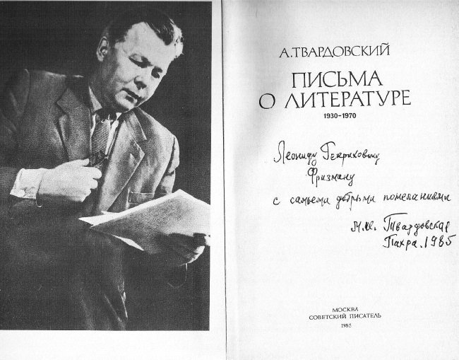Автограф А. Т. Твардовского