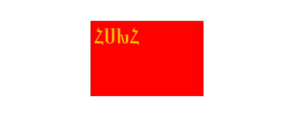 В конце января – начале февраля 1921 г. состоялся I съезд Советов Социалистической Советской Республики Армении, утвердивший ее Конституцию, в статье 89 которой сказано, что государственный флаг республики представляет собой ярко-красное полотнище, в левом верхнем углу которого, у древка, помещены золотые буквы «ССРА» или же надпись «Социалистическая Советская Республика Армения». Так как в Конституции не было сказано, на каком языке выполняется надпись, то использовались флаги и с надписью кириллицей, и армянскими буквами.