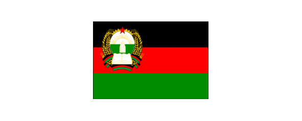 Но вскоре произошел внутрипартийный переворот, к власти пришел Наджибулла и 21 апреля 1980 г. был учрежден новый флаг (пропорции 1: 2). Он состоял из трех горизонтальных полос уже равной ширины: черной, красной и зеленой; в верхнем углу у древка, на черной и красной полосе было помещено изображение нового государственного герба.