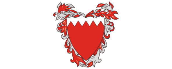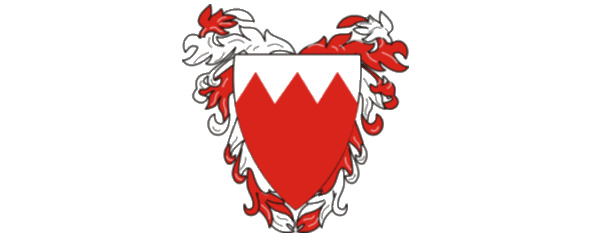 Герб спроектирован сэром Чарльзом Бельграо – последним британский консультантом эмира Бахрейна (1926—1957), который взяв за основу флаг, развернул его вертикально, придал вид геральдического щитаи и уменьшил количество зубцов с восьми до пяти. Так же есть и другие варианты: щит увенчан шлемом или короной с возникающим из нее шлемом.
