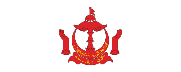 На полумесяце расположена надпись «Рука Бога благословляет на доброе», на ленте – название страны «Бруней дар ас-Салам» («Бруней – дом мира»). Все изображения красного цвета, надписи выполнены золотом на арабском языке.