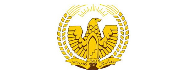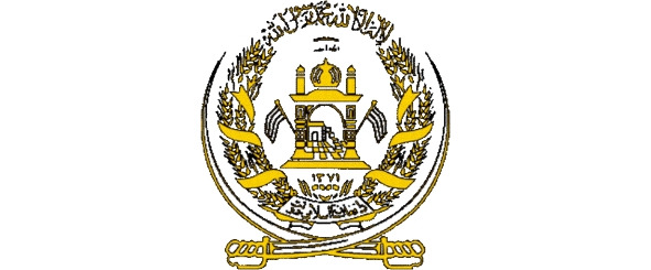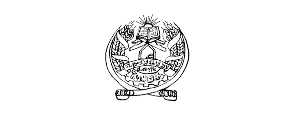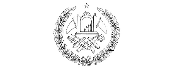 Все это обрамлено двумя рядами пшеничных колосьев, перевитых лентой со свободными концами, на центральной части которой, в основании герба, начертано слово «Афганистан».