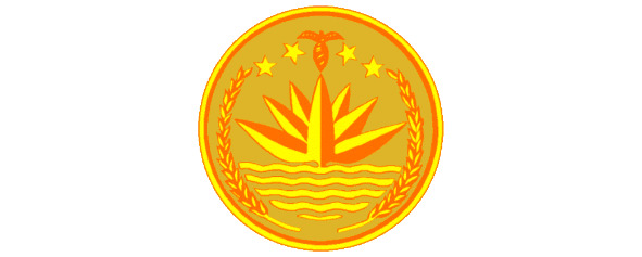 Золотой цвет герба символизирует самоназвание «золотая Бенгалия». Волнистые линии – водные ресурсы страны (3/4 территории – это дельты Ганга и Брахмапутры). Шапла – национальный цветок, рис – самая важная сельскохозяйственная культура и основной продукт питания ее жителе, чай – важнейшая статья экспорта. Четыре звезды символизируют цели национального развития государства: национализм, демократию, социализм и государственную собственность.