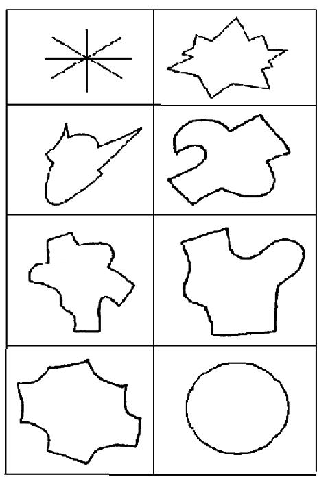 Для проведения эксперимента необходим набор геометрических фигур. Каждую фигуру следует расположить на отдельной карточке для удобства их ранжирования. Если эксперимент носит групповой характер, необходимо приготовить крупный план изображения.