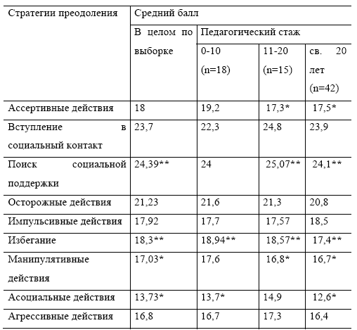 Стратегии преодоления у учителей по результатам опросника SACS С. Хобфолла в адаптации Н. Водопьяновой, Е. Старченковой