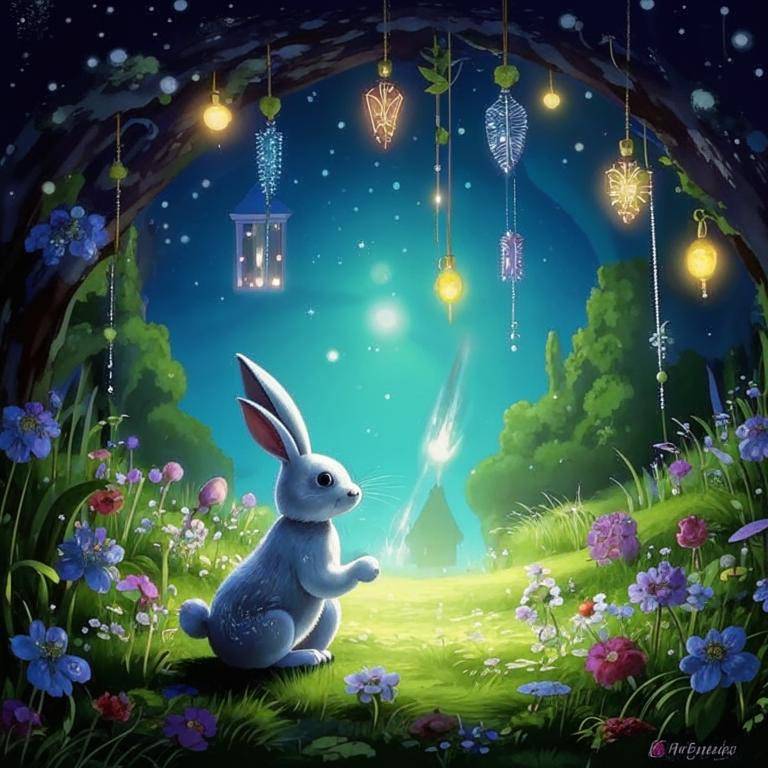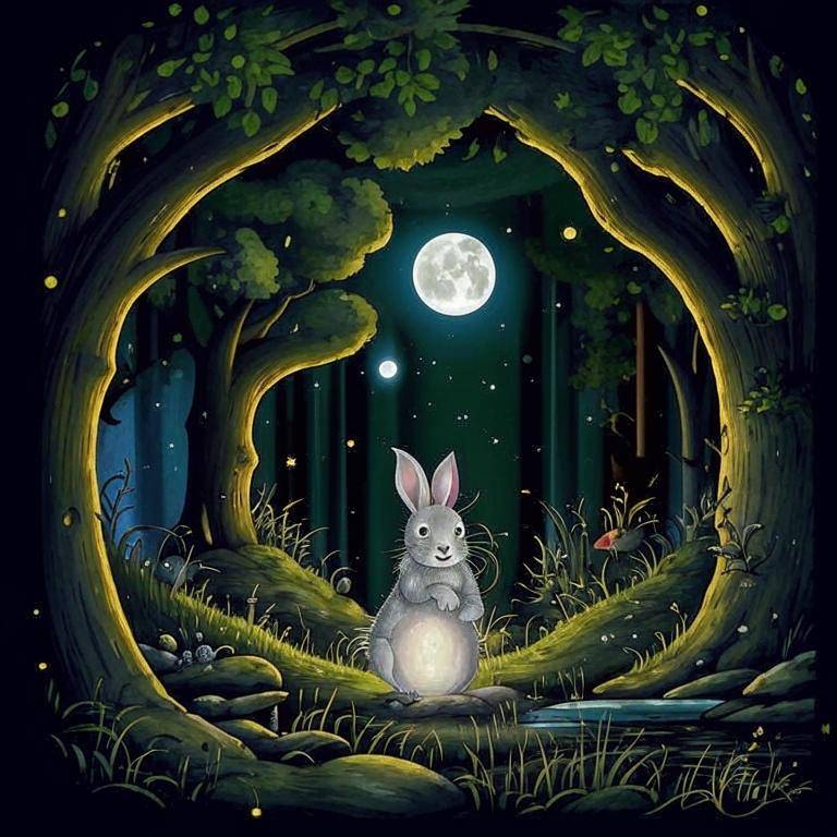 Каждую ночь в этом лесу, когда Луна поднималась в небо, начиналась настоящая магия. Цветы, которые дремали днем, открывали свои светящиеся лепестки, а маленькие светлячки устраивали танцы среди ветвей. Но среди всех этих чудес жил один необычный житель – зайчонок по имени Сиянка.