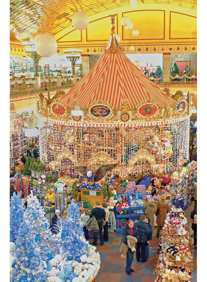 Анастас Иванович любил большие нарядные магазины. Однажды в командировке он увидел нью-йоркский Macy’s, все девять его великолепных этажей, выстроенных в стиле манхэттенского ар-деко. Технические новинки, которыми щеголял магазин, – крутящиеся кронштейны для демонстрации платьев, электрические машинки для чистки обуви и взбивания коктейлей, эскалаторы, еще с деревянными ступенями, – произвели на партработника впечатление. И он решил, что такие же магазины нужны и советским людям.