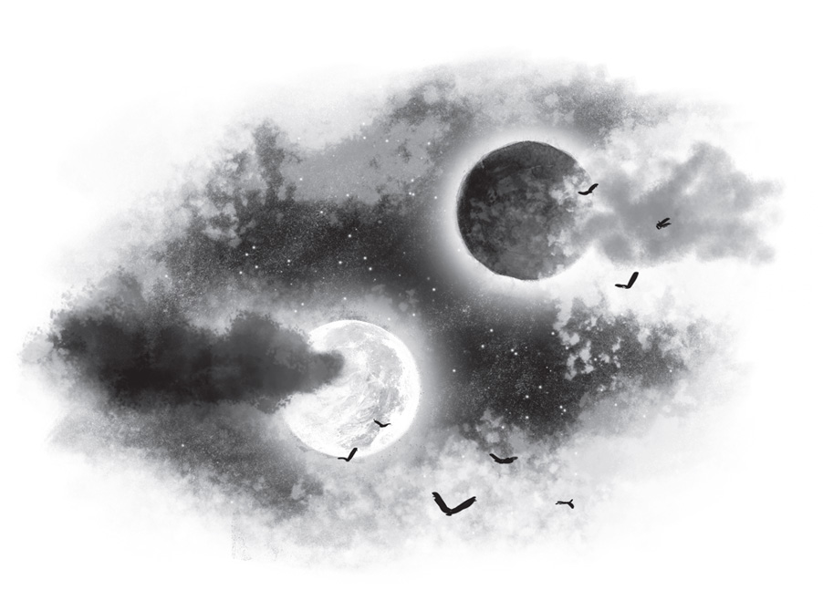Глогх дремал уже несколько сот веков – последний из своего племени, пережиток первобытного мира. Словно толчок пробудил его ото сна. Он заворчал, не желая покидать край грёз, но запах, такой сильный и явственный, точно его источник находился совсем рядом, отрезвил – тёмный путь открылся. Глогх с трудом поднялся – конечности затекли – во весь свой огромный рост и направился к выходу. Стая летучих мышей всполошилась и в панике полетела из пещеры, будто свита, предупреждающая приход короля. Глогх сбил сталактиты и сталагмиты, выросшие как прутья клетки, и выбрался наружу. Пахло смолой и первой травой, пробуждающейся жизнью, бурным соперничеством и любовью. Ароматы горячили кровь, кружили голову, но основной, от которого Глогх пробудился, звал настойчиво на поиски тех, кто отворил тёмный путь. Глогх поднял голову и замер в экстазе: над горизонтом вставала Чёрная Луна. На фоне звёздного неба она казалась дырой в мироздании. Глогх поднял голову и завыл, приветствуя повелительницу.