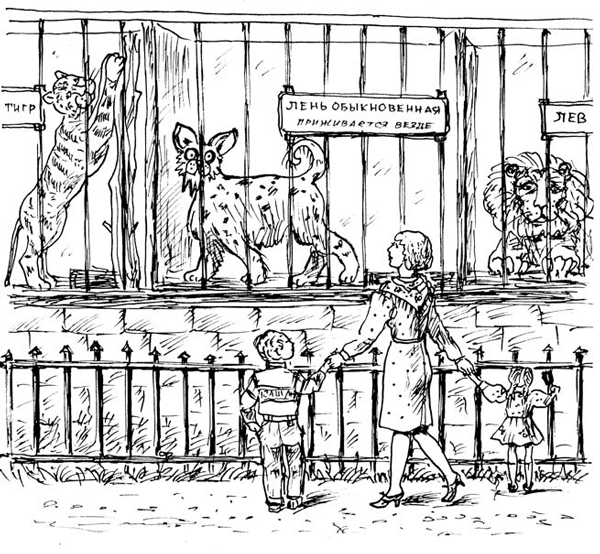 Наступает новый день,А вставать не хочется:Раньше всех проснулась лень,У кровати топчетсяЕле слышно, словно рысьПрячется в засаде;Я замахиваюсь: – Брысь! —Подползает сзади,Лапу на щеку кладёт —Ах, какая лапка!..Жду, когда же лень уйдёт,И мечтаю сладко…Нет! Устрою лучше яНа неё засадуИ отдам к исходу дняЗверя – Зоосаду.Этой лени я хитрей:Притворяясь спящей,Хвать за шкирку! – кто бодрейВ схватке настоящей?Клочья шерсти, перья, пух.Рваные подушки…Проявляют твёрдый духНеразлей-подружки!Проступает новый деньСолнцем на фасаде,А моя гуляет леньВ клетке – в Зоосаде.И над клеткой, на гвоздеНадпись непременная:«Приживается вездеЛЕНЬ ОБЫКНОВЕННАЯ».