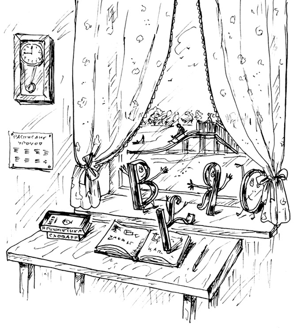 На столе лежит букварь.За окном трещит январь.Скучно буквам в букваре