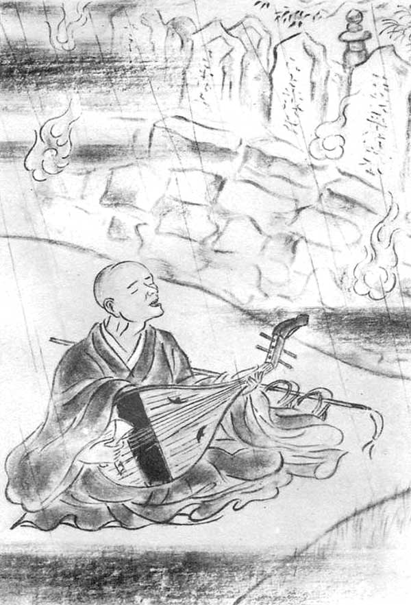 Несколько столетий назад жил в Акамагасэки слепой человек по имени Хоити, снискавший славу сказителя и мастера игры на биве[5]. С самого раннего детства овладевал он этими двумя искусствами и в довольно юном возрасте уже превзошел своих наставников. Как о самом одаренном бива-хоси о нем говорили прежде всего те, кто слышал в его исполнении сказание о Хэйкэ и Гэндзи. Эти счастливцы утверждали, что, дескать, когда Хоити поет о битве в Данноуре, «даже чудища-кидзины не могут удержаться от слез».