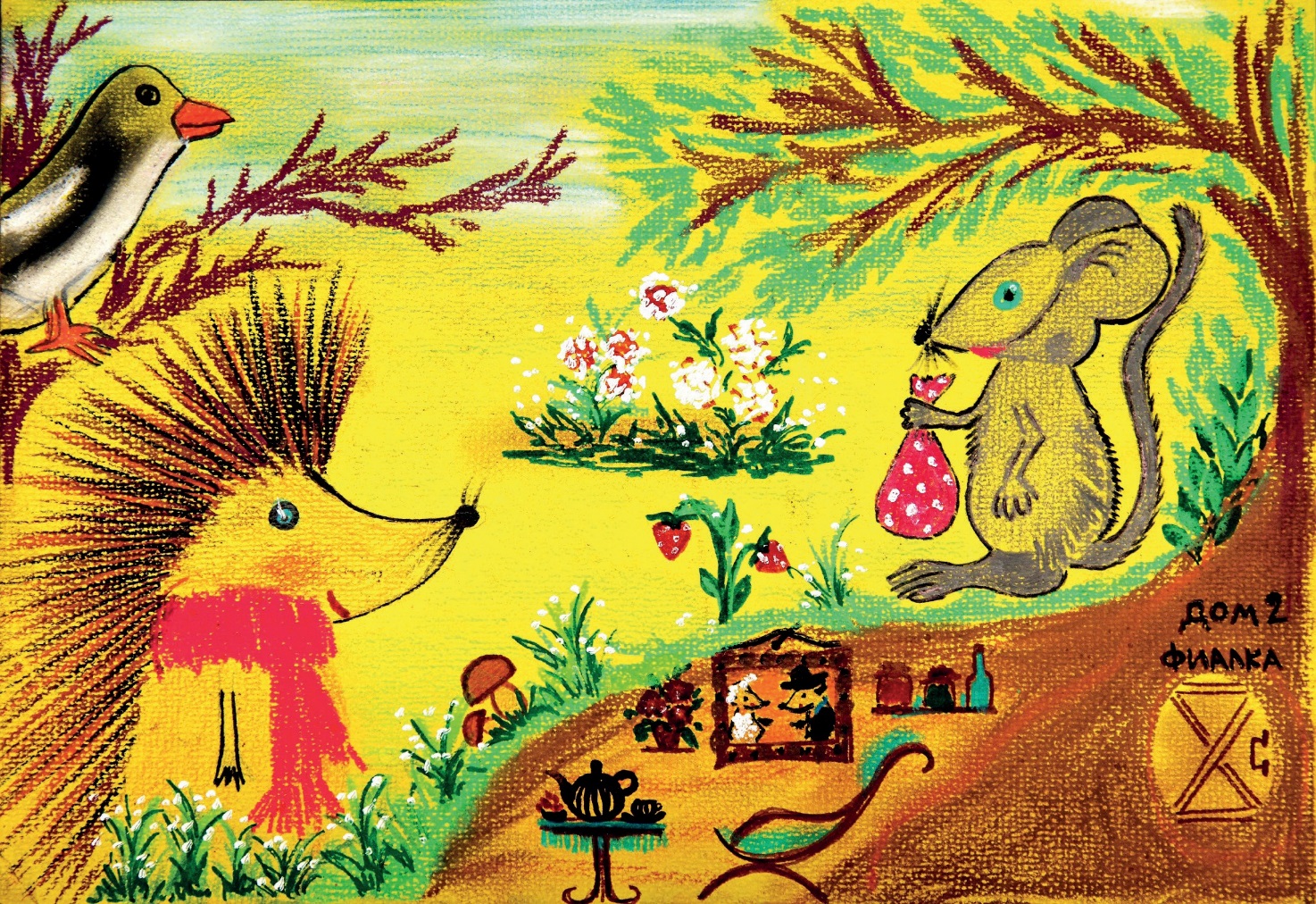 Этот мышонок был таким учтивым и вежливым, что нашим ёжикам пришлось разогревать чайник и приглашать соседа к столу на вторую ватрушку. Вскоре к ним присоединилась и мышка Ника, очень весёлая и симпатичная. Она красиво рисовала и пообещала обязательно нарисовать портреты ёжиков.