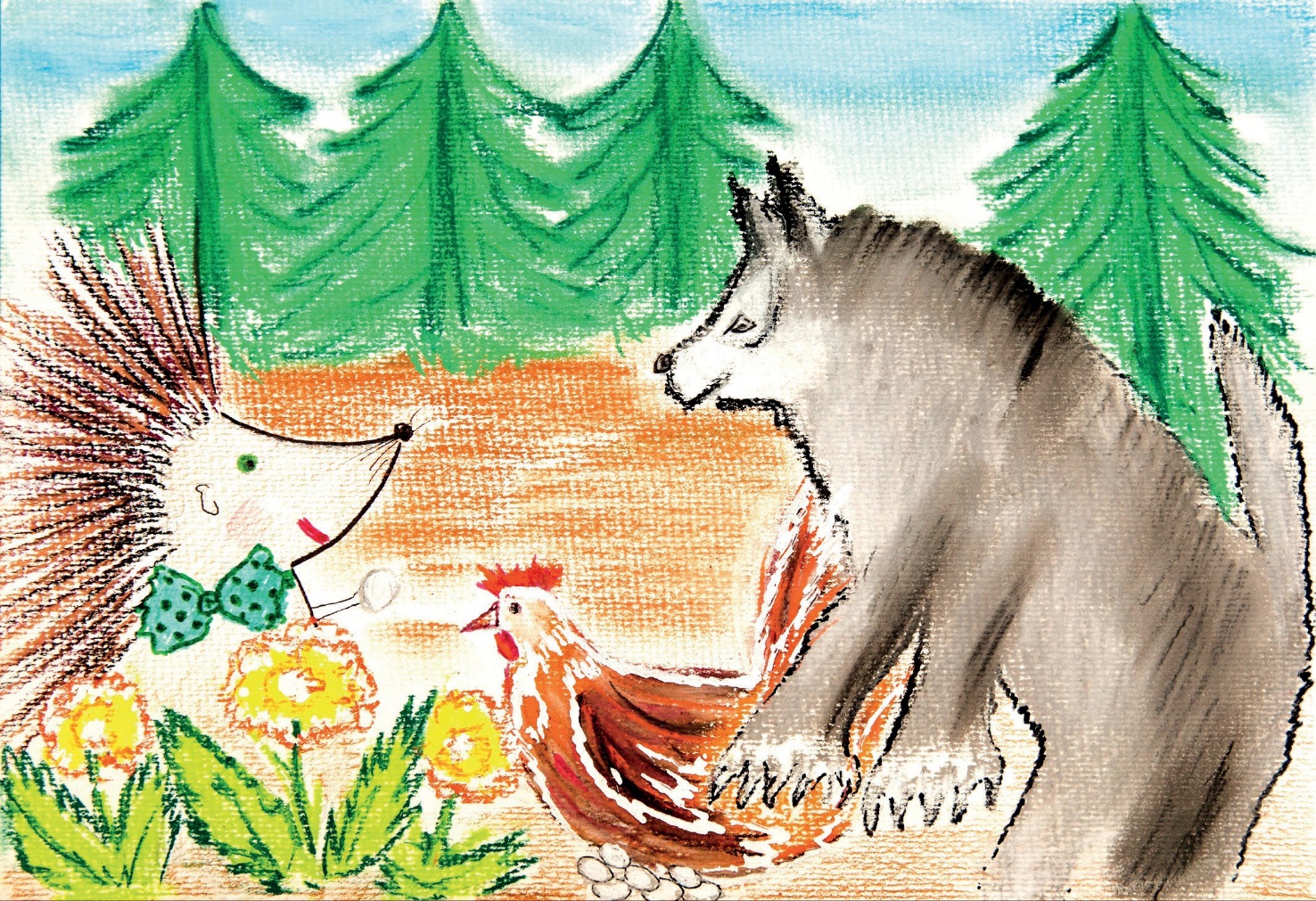 – Как, вы не рассказали другу историю про отважного цыплёнка Пухолапкина? – удивился волк и немедленно начал свой рассказ.