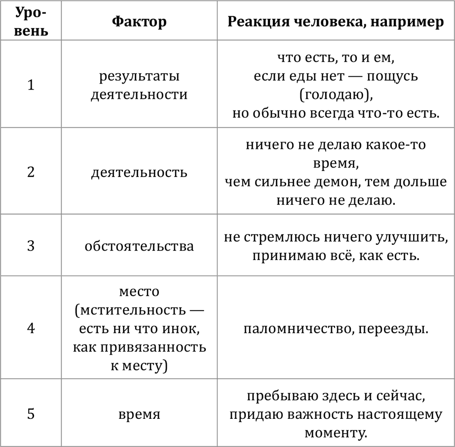 Начинаем с простого: с первого уровня и так выше до пятого – влияния времени (подробнее – в таблице, приведённой ниже):
