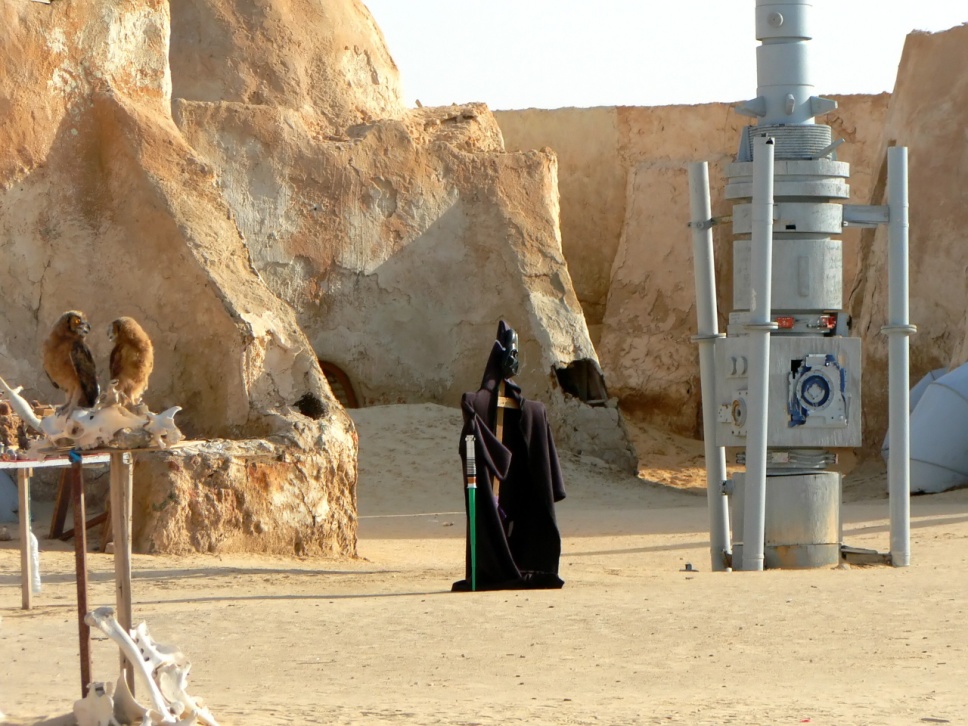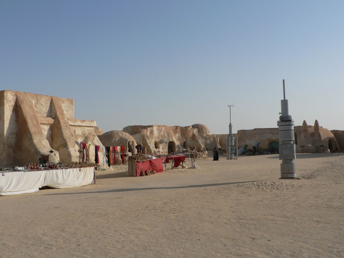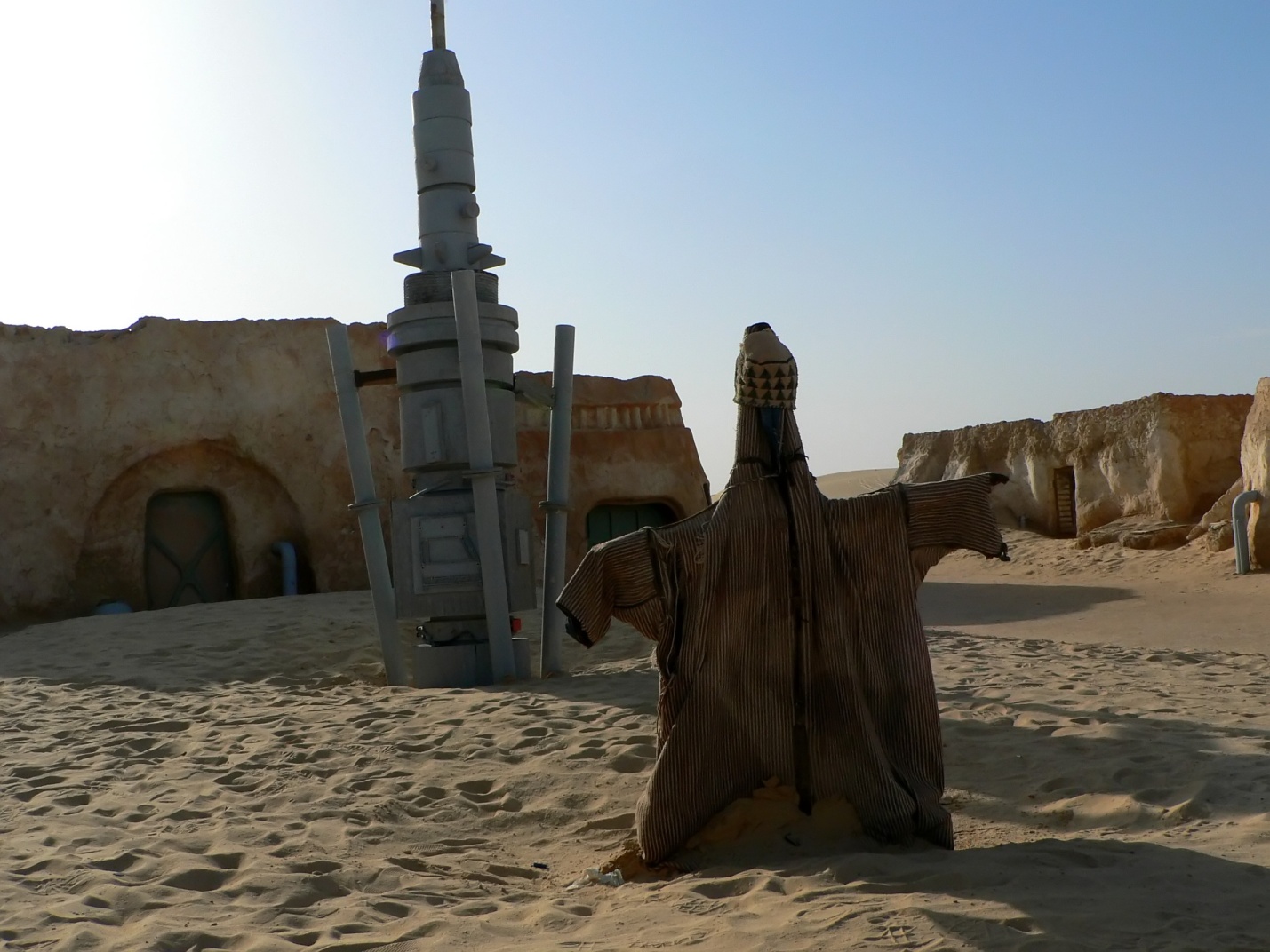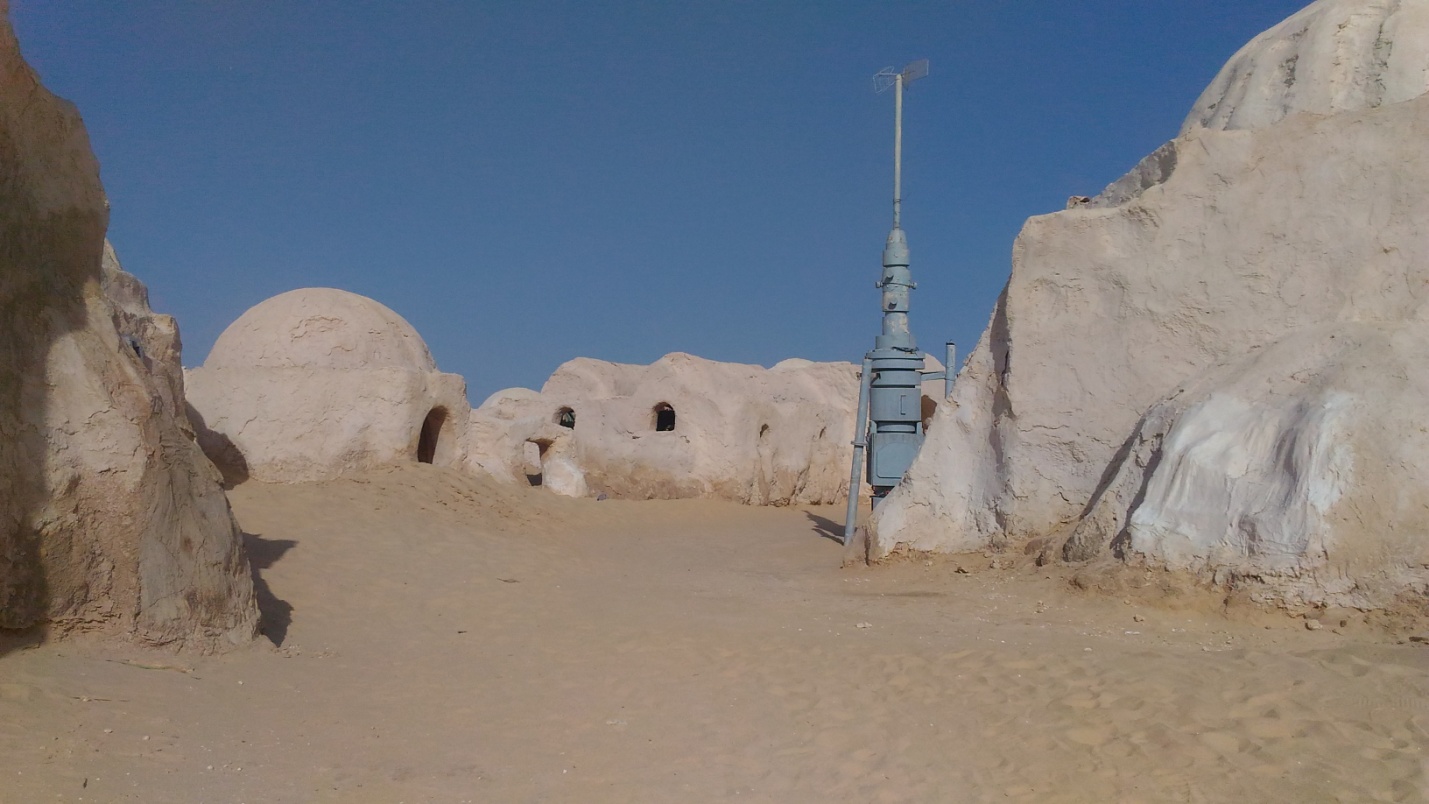 К сожалению, похоже, здешние берберы не очень-то оценили подарок мистера Лукаса, потому что почти все дома, при ближайшем рассмотрении, сильно поизносились, а внутри многие почти до самой крыши занесло песком. Вышки связи, казавшиеся металлическими и блестящими на киноэкранах, местами облупились и потрескались, обнажая деревянную основу.