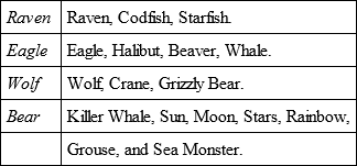 Each of these four main divisions had totem kins within it, and, as usual, the same totem (all are animals) never occurred in more than one main division. (Howitt, N.T.S.E.A. p. 130.) In precisely the same way "crests" of animal name occur in each of the four Tsimshian "clans":