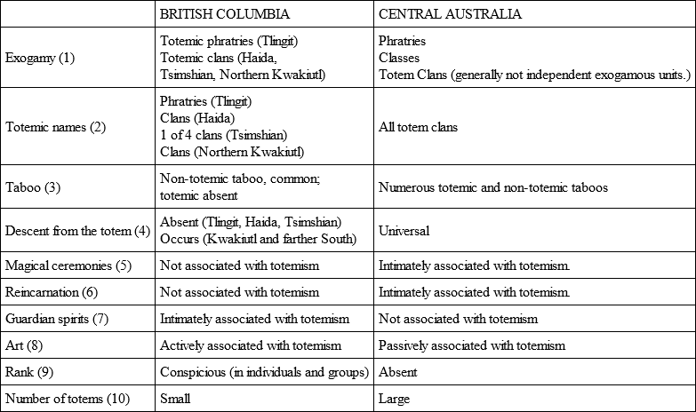 TOTEMISM IN BRITISH COLUMBIA AND CENTRAL AUSTRALIA