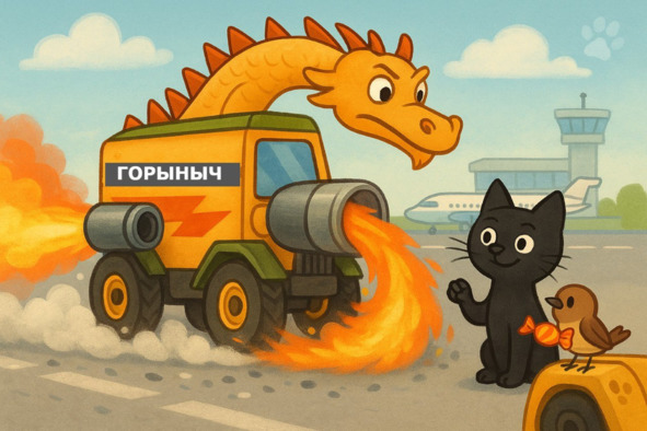 – Не бойтесь, это не сказочный змей, а наш старый добрый Горыныч, – улыбнулся он. – Очищает ВПП, чтобы самолёты не споткнулись! 💨