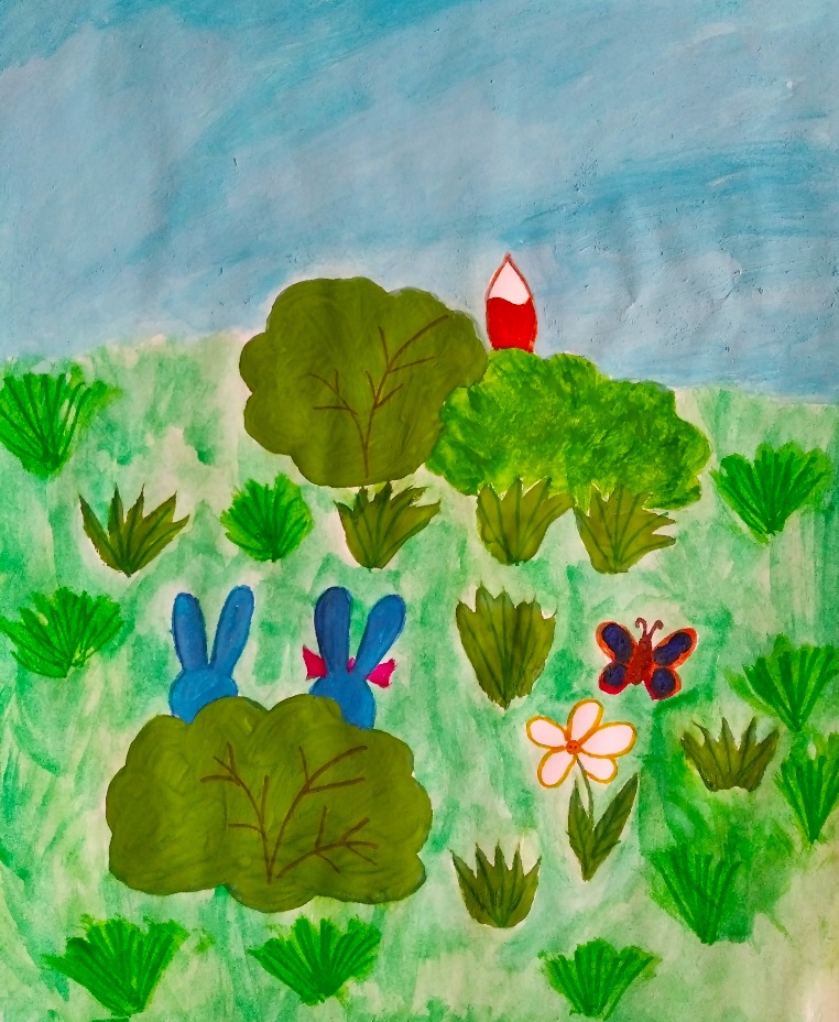 Зайчиха утром проснулась и занялась домашними делами. Приготовив завтрак, она стала звать к столу зайчат. Но они не откликались.