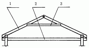 Рис. 17. Наслонные стропила: 1 – стропильная нога; 2 – ригель; 3 – затяжка